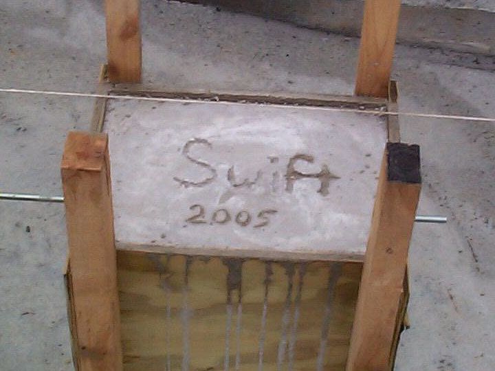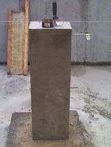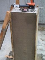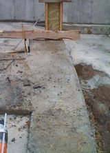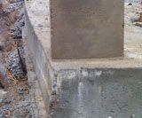 I failed to take pictures of the empty forms; concrete pouring day was a bit exhausting. The concrete was mixed outside the foundation in my neighbours electric mixer and transferred in by the bucket load. The west (right) column is poured right out at the edge of it's footing thanks to a bit of creative form work by my concrete subcontractors.