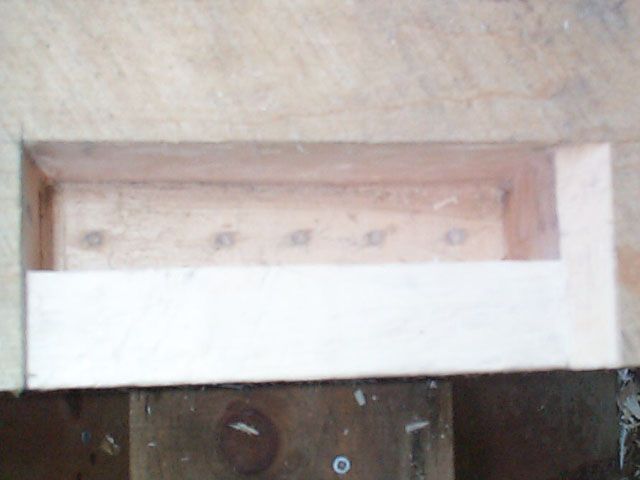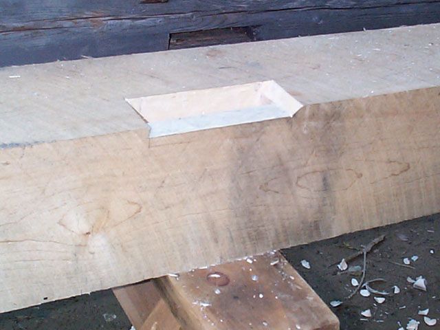 Here is the first knee brace mortice I bored with my Millers Falls, it is complete save for the peg hole.