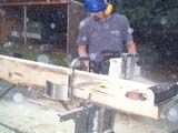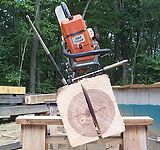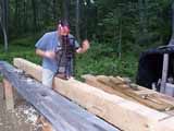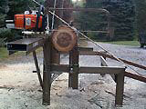 Here is another fine Logosol product, the Timberjig. It's an invaluable tool when faced with a large log that is either too short or too heavy for the M7. On the linked page you can see the Timberjig cutting a scarf joint for the sill structure of our house.