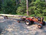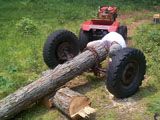If you aren't bringing the sawmill to the log then you'll need to move the log to the mill. This is usually accomplished by lifting the leading edge of the log (or placing it on a skid) and dragging it out with a log skidder, pair of oxen or in our case the GtLS. By putting the leading edge of the log on a rolling frame we are able to move significantly heavy logs with just a 12hp. garden tractor.